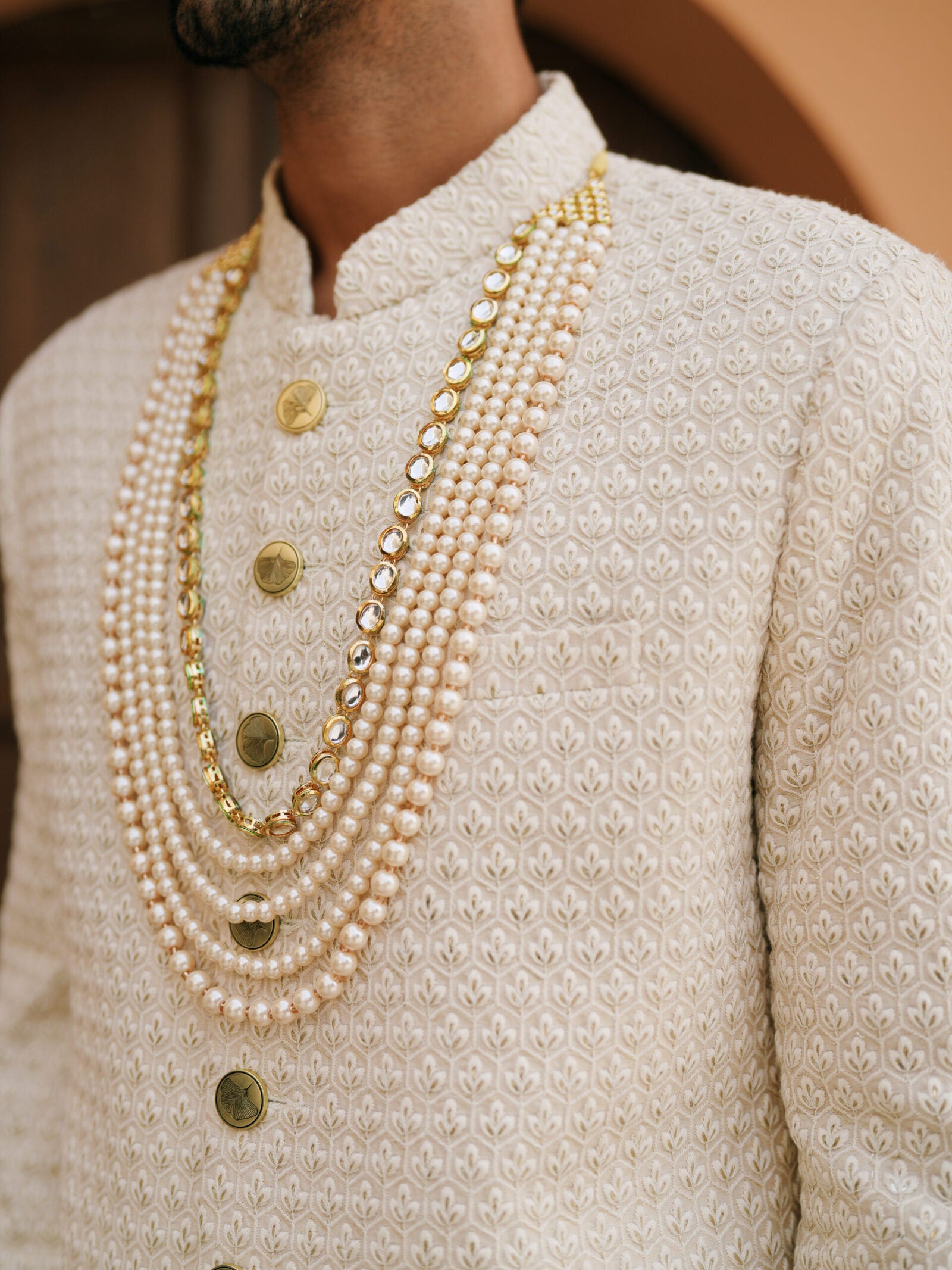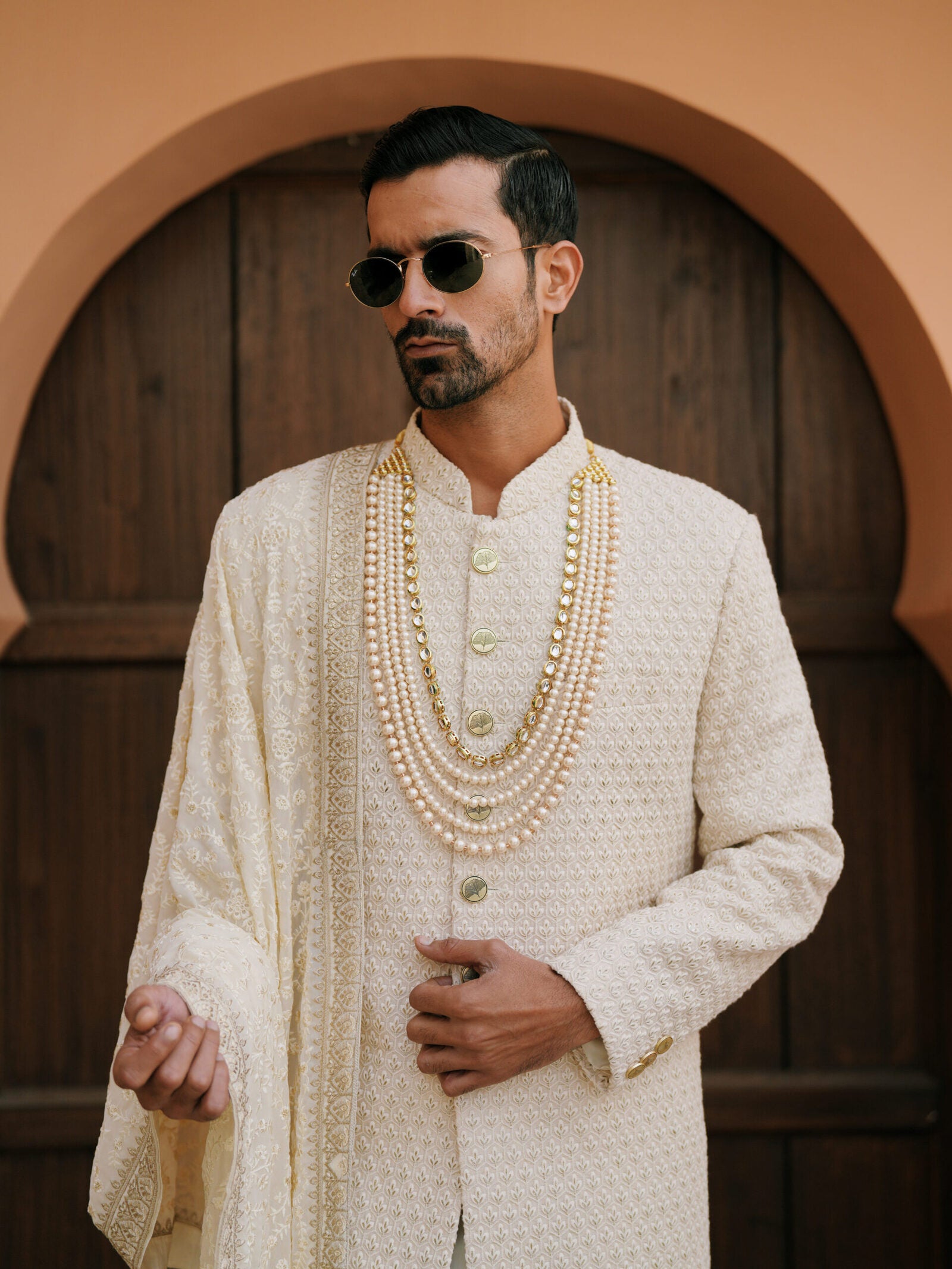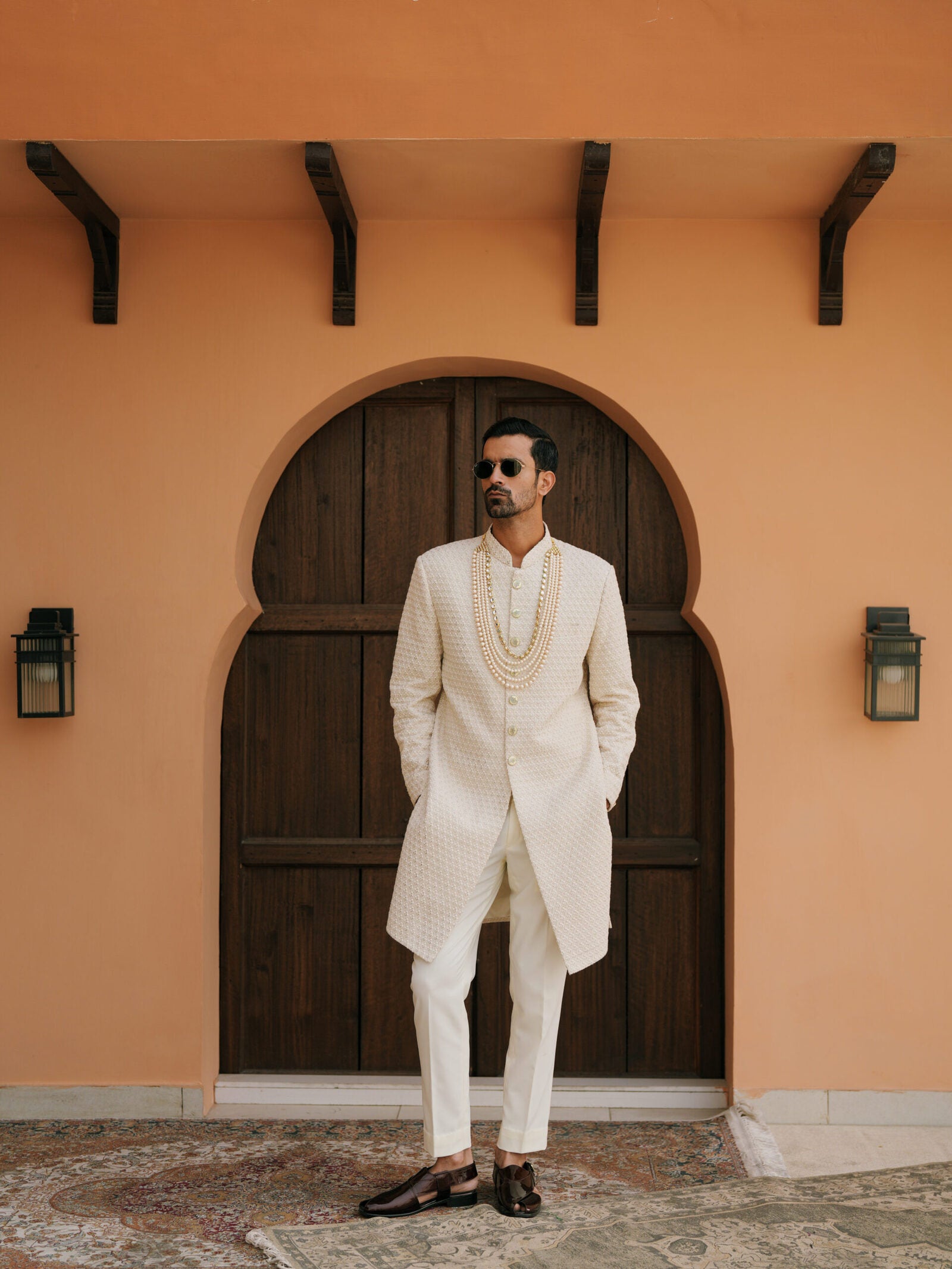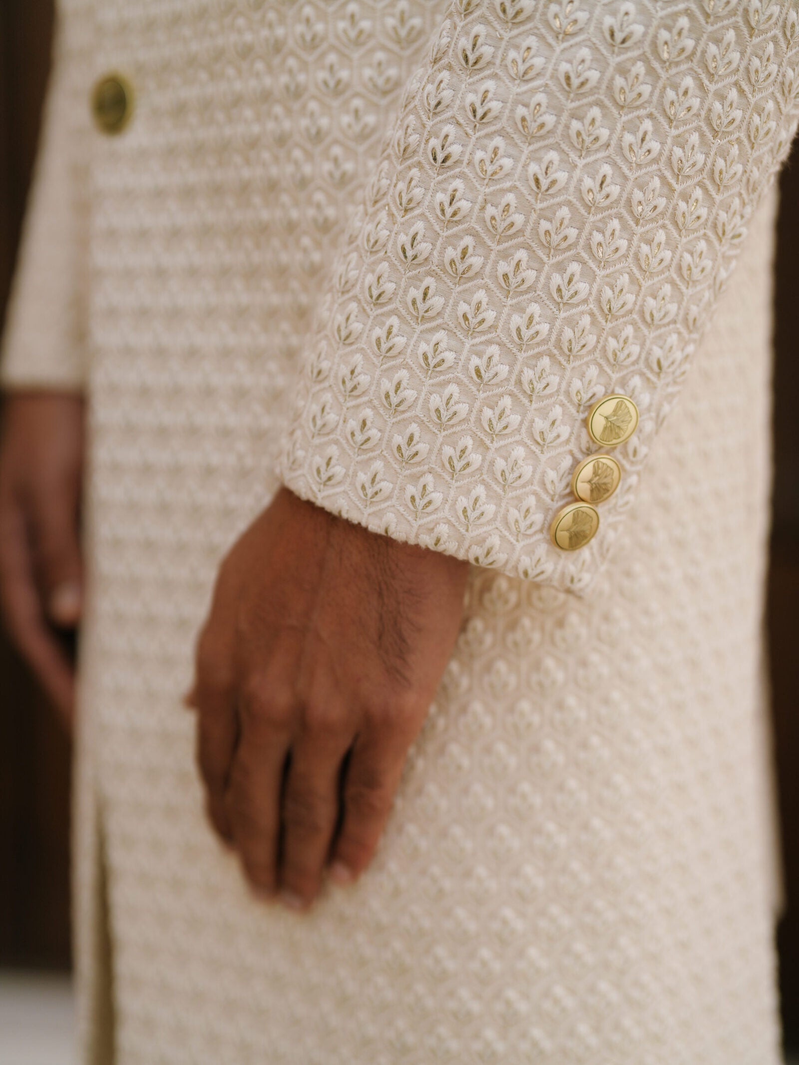 - Embroidery: Subtle floral and self-design embroidery with zari threadwork for a sophisticated finish