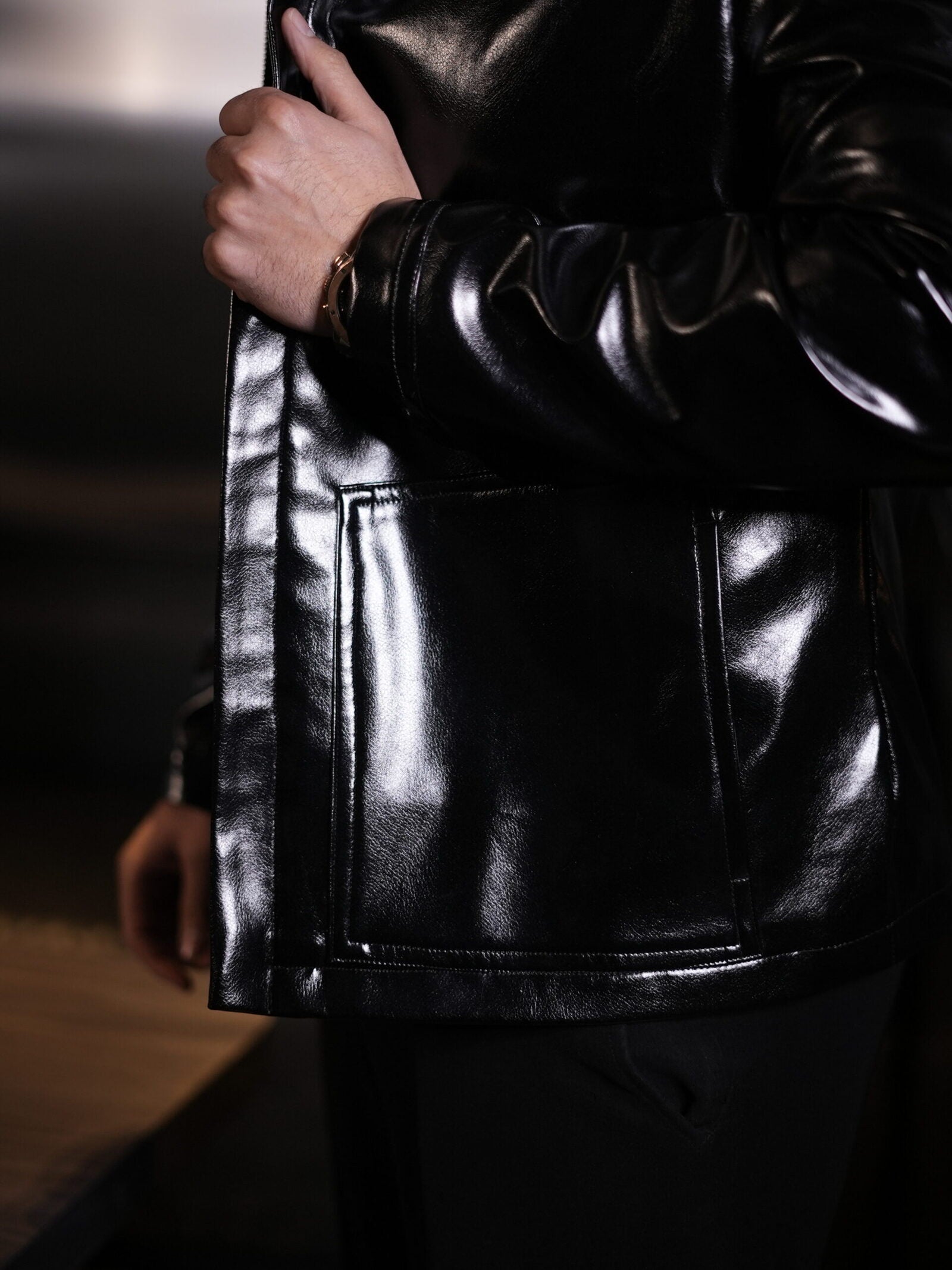 A jacket that speaks for itself—glossy black faux leather, effortlessly bold, and made to turn heads. Versatile enough for any occasion, it’s that one piece you’ll keep reaching for.