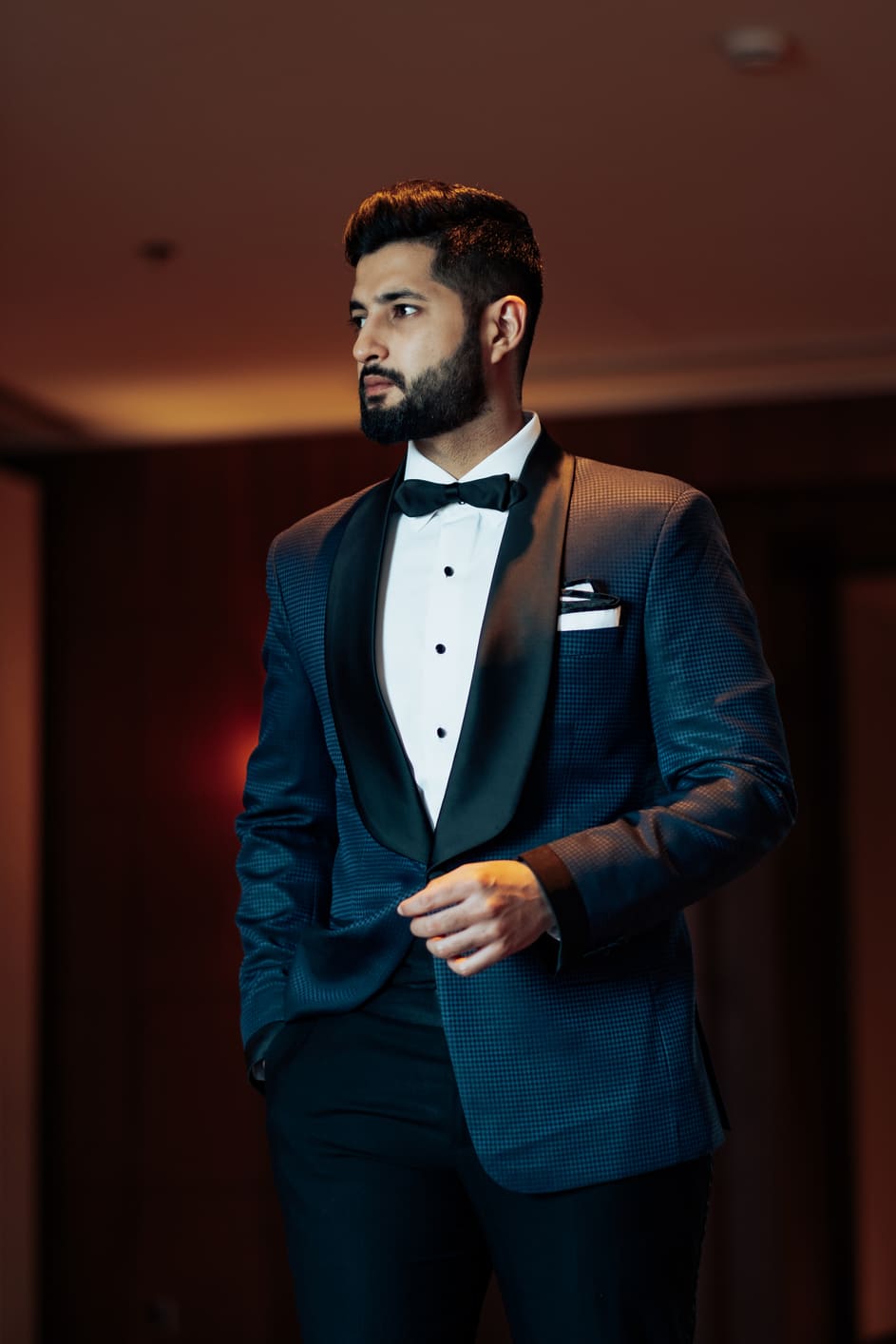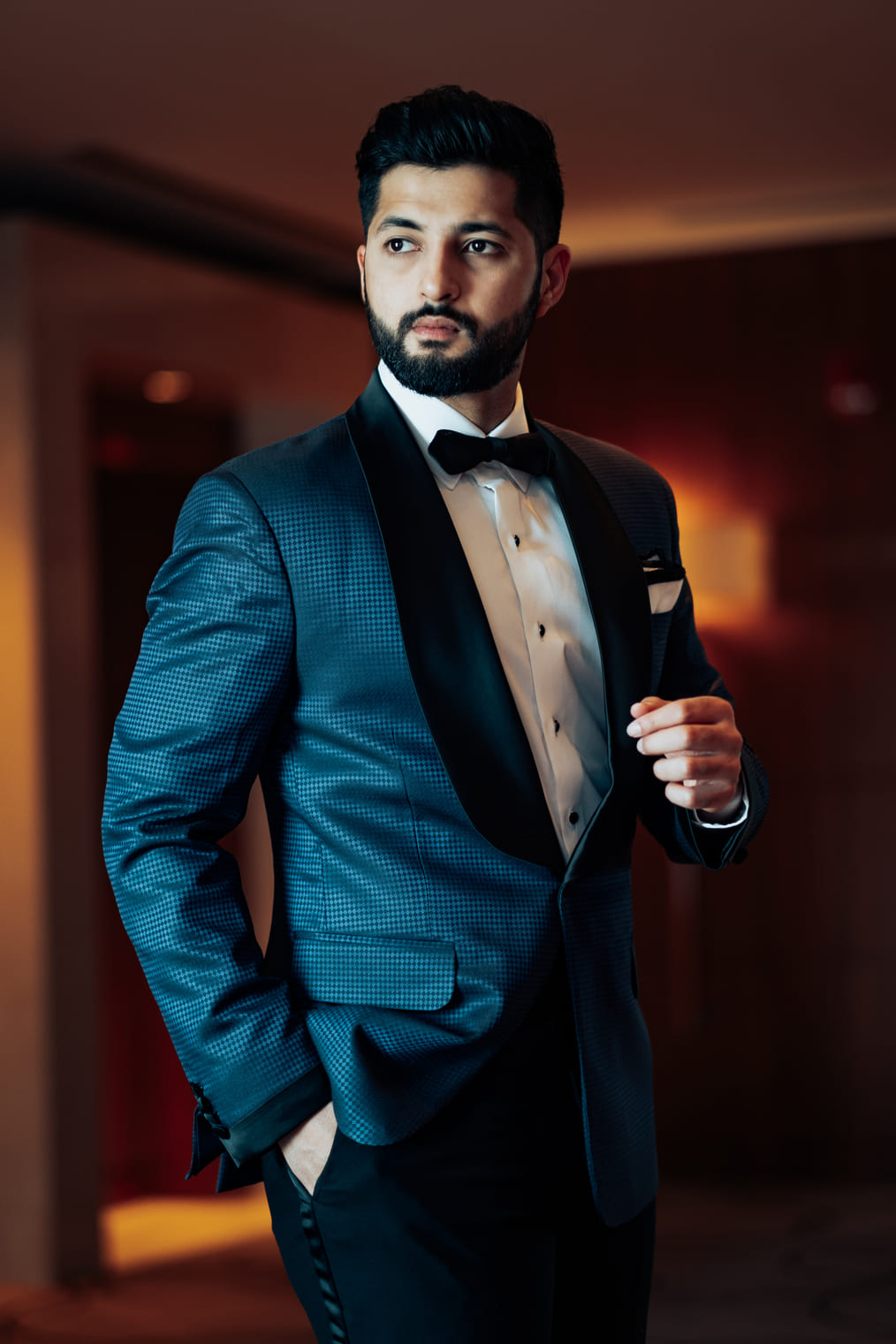 • Blue jacquard tuxedo