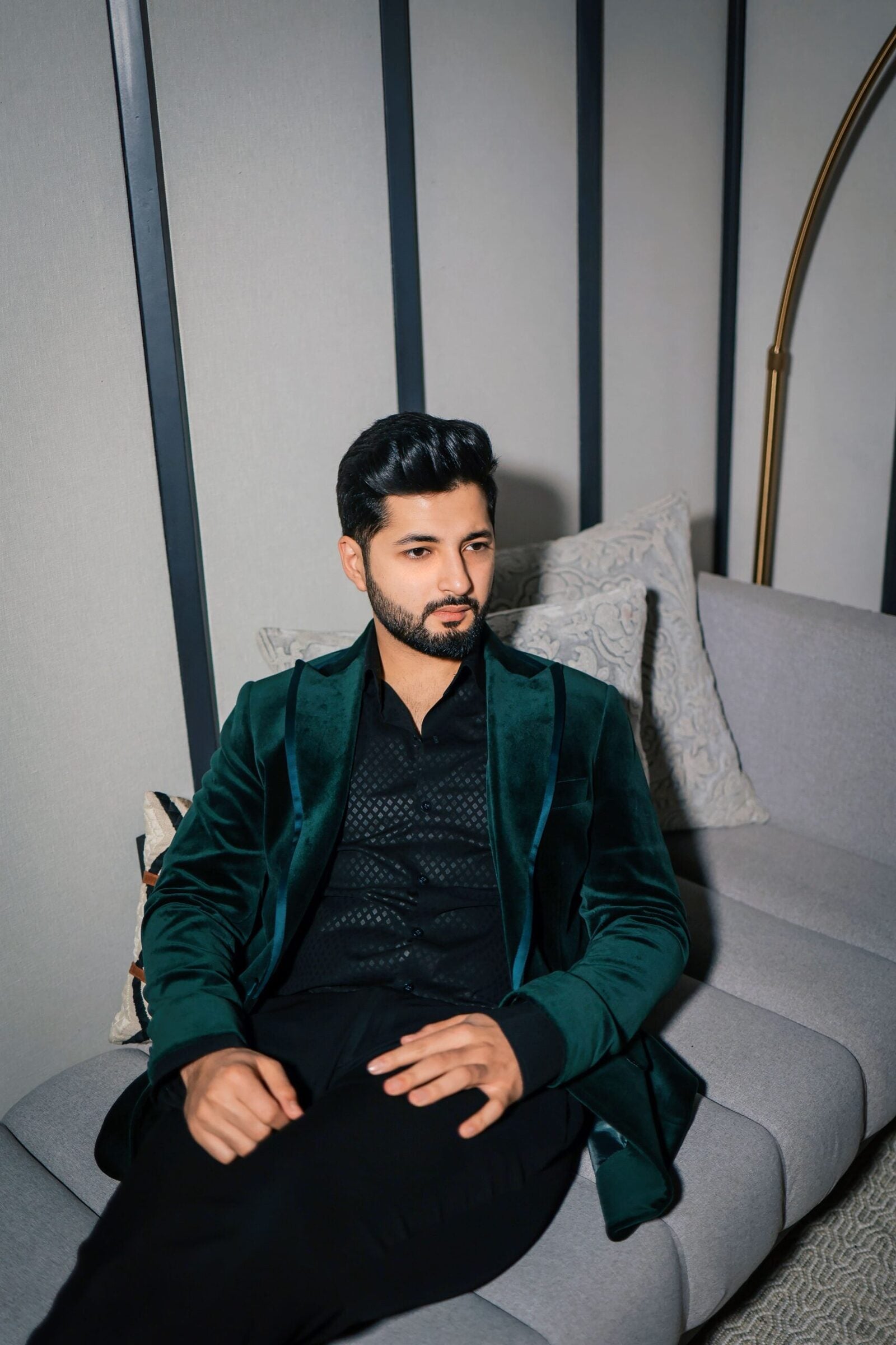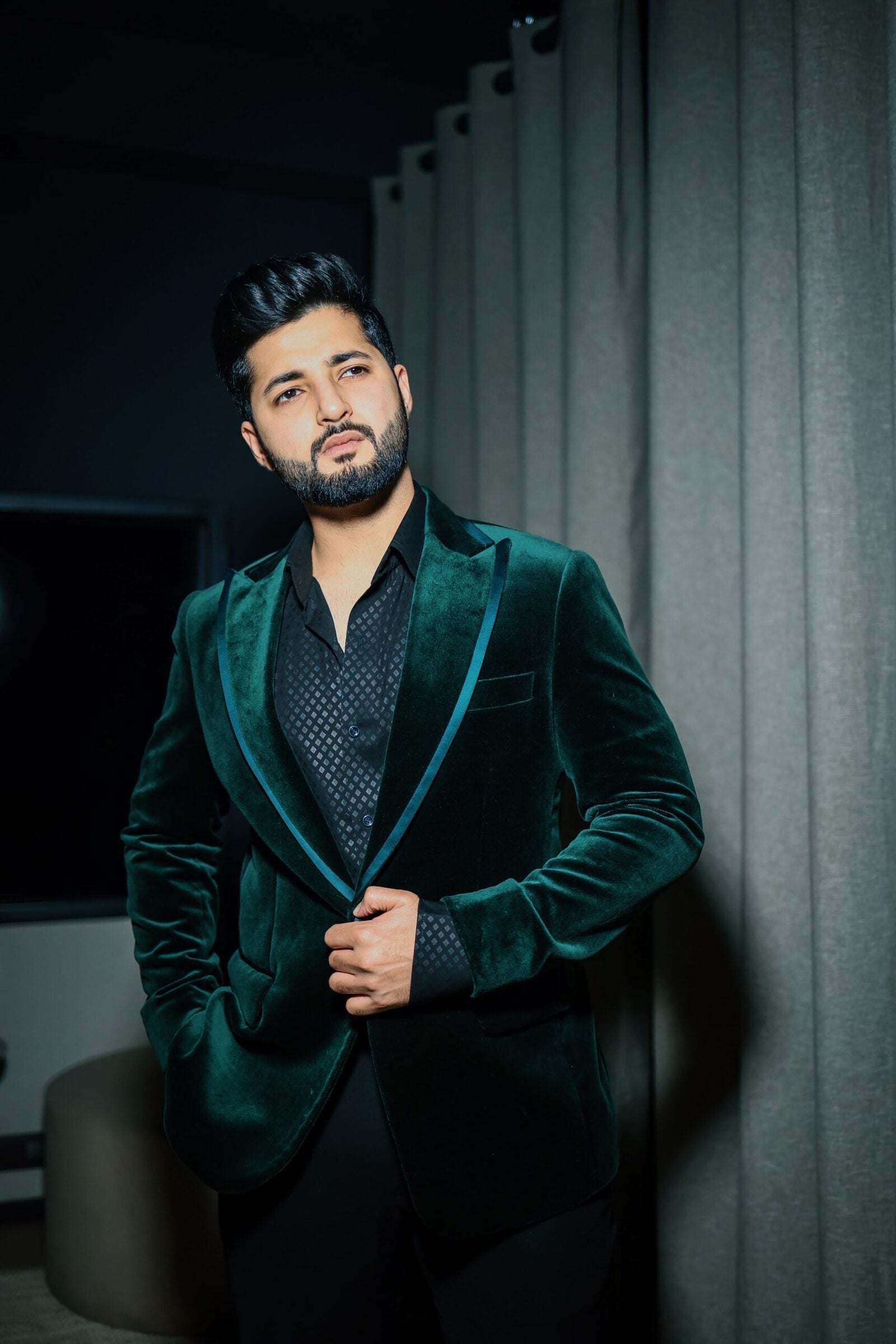 Bottle green velvet blazer bottle green velvet blazer in 100% cotton velvet. The lapel detailing makes it stylish and unique.