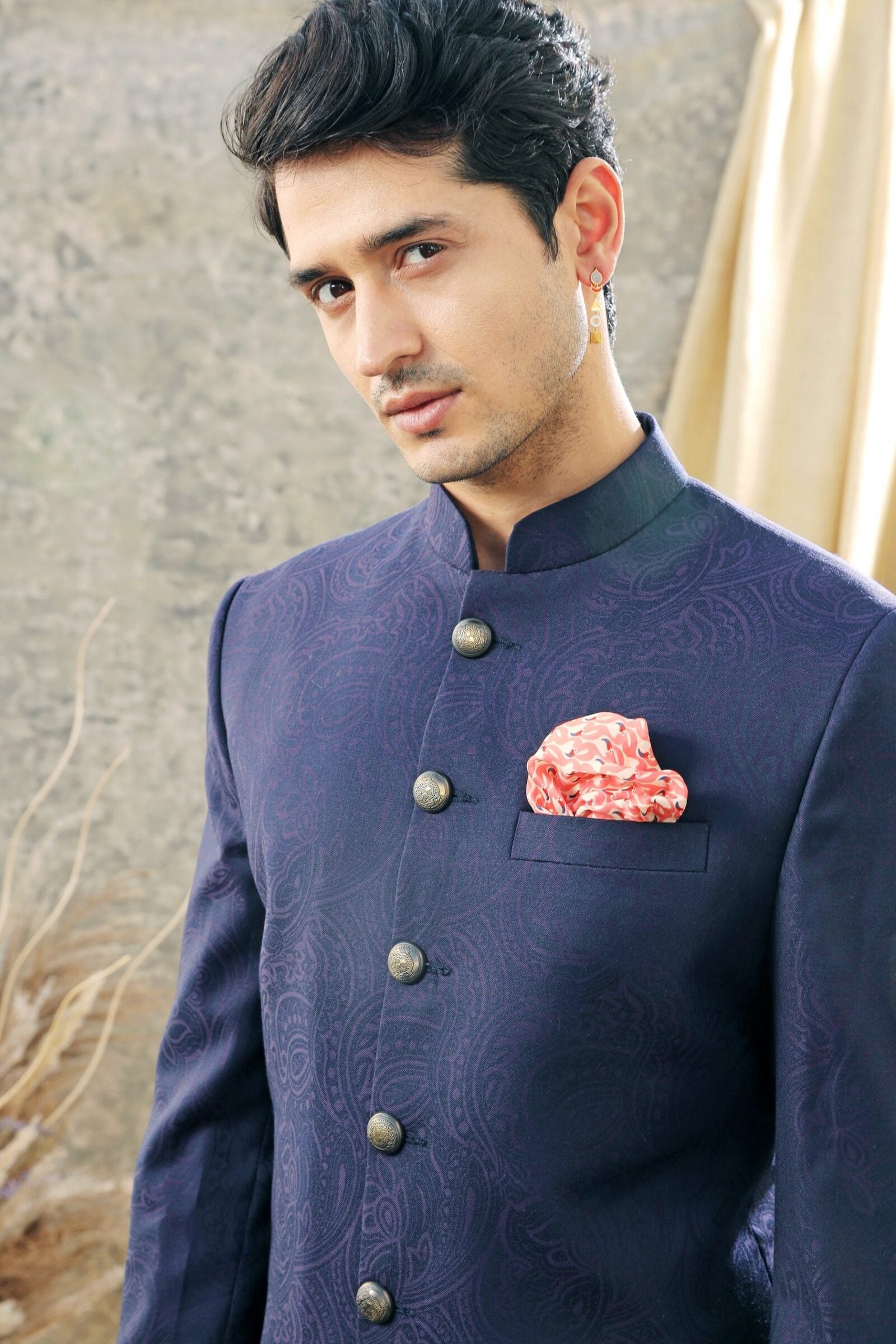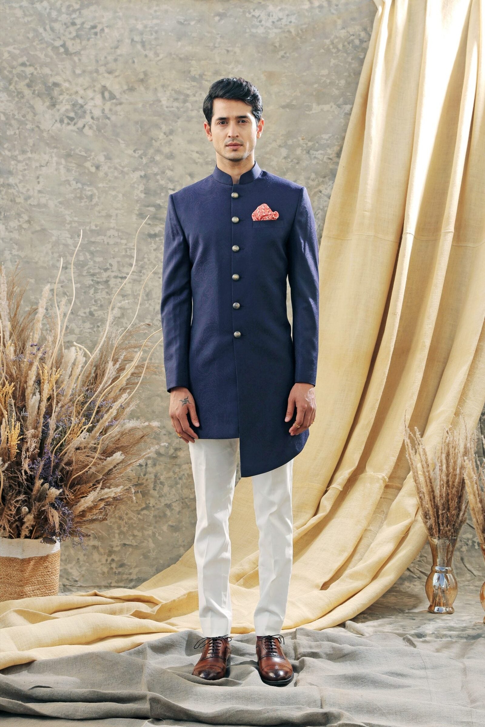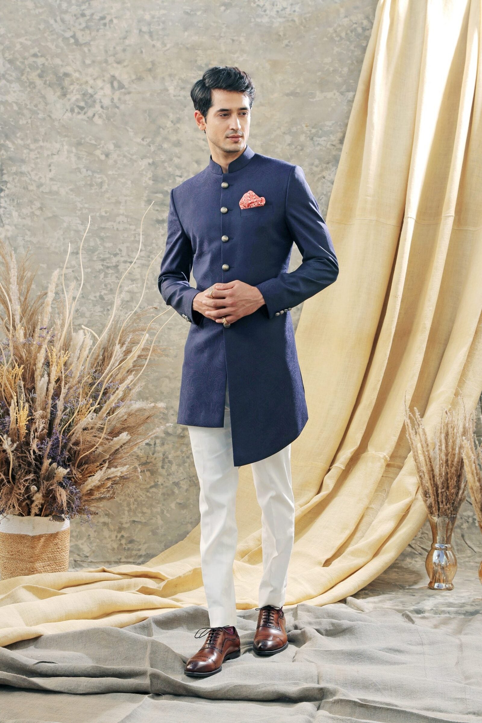 Deep purple jacquard Indowestern