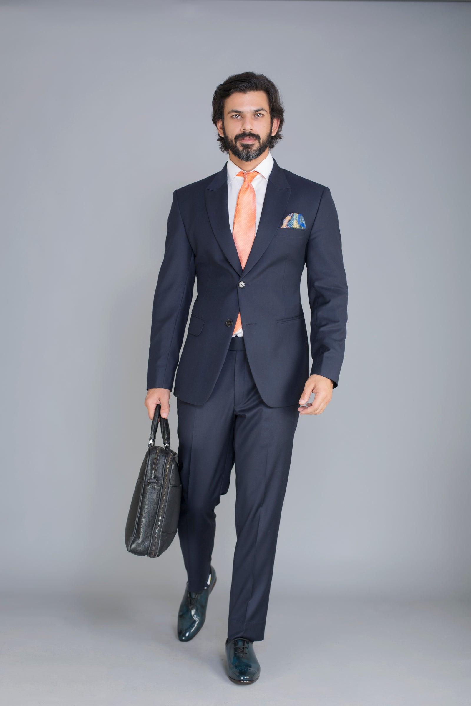 Classicmidhnight blue suit with notched lapel and a 2 button blazer