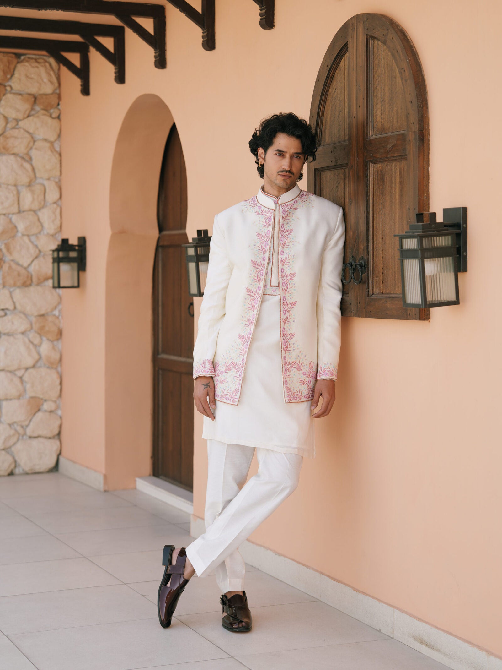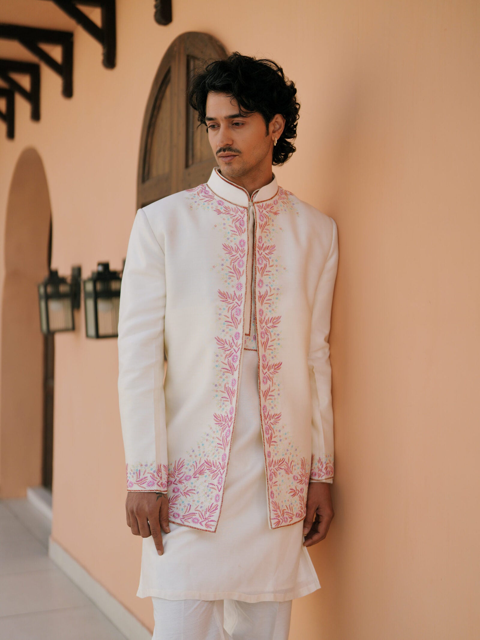 - Embroidery: Colorful and detailed floral designs on the bandhgala and kurta