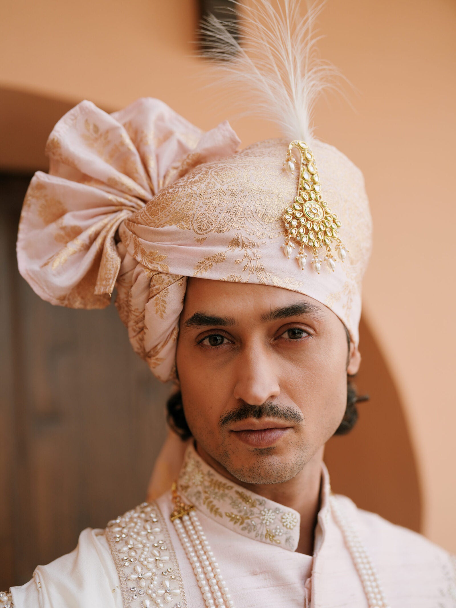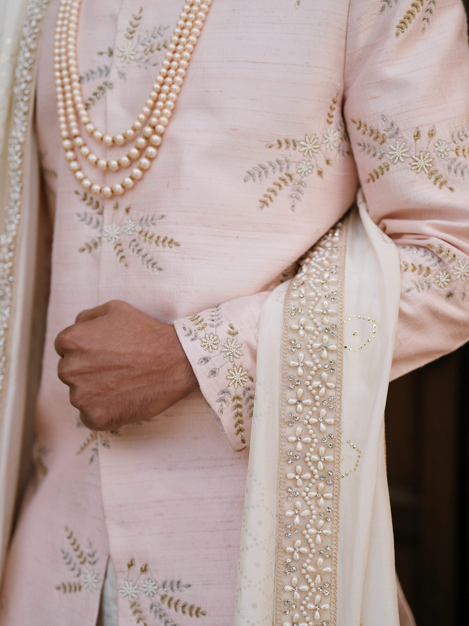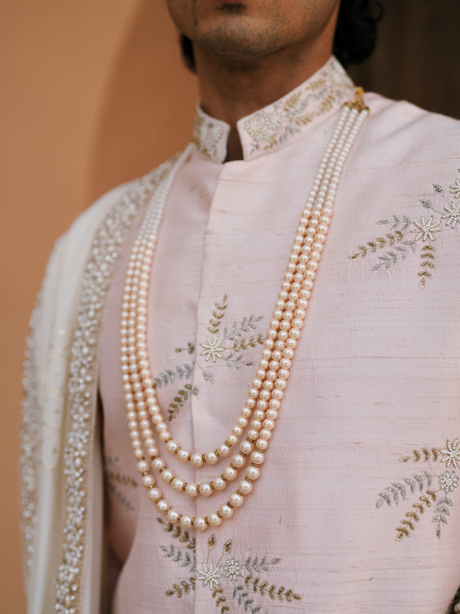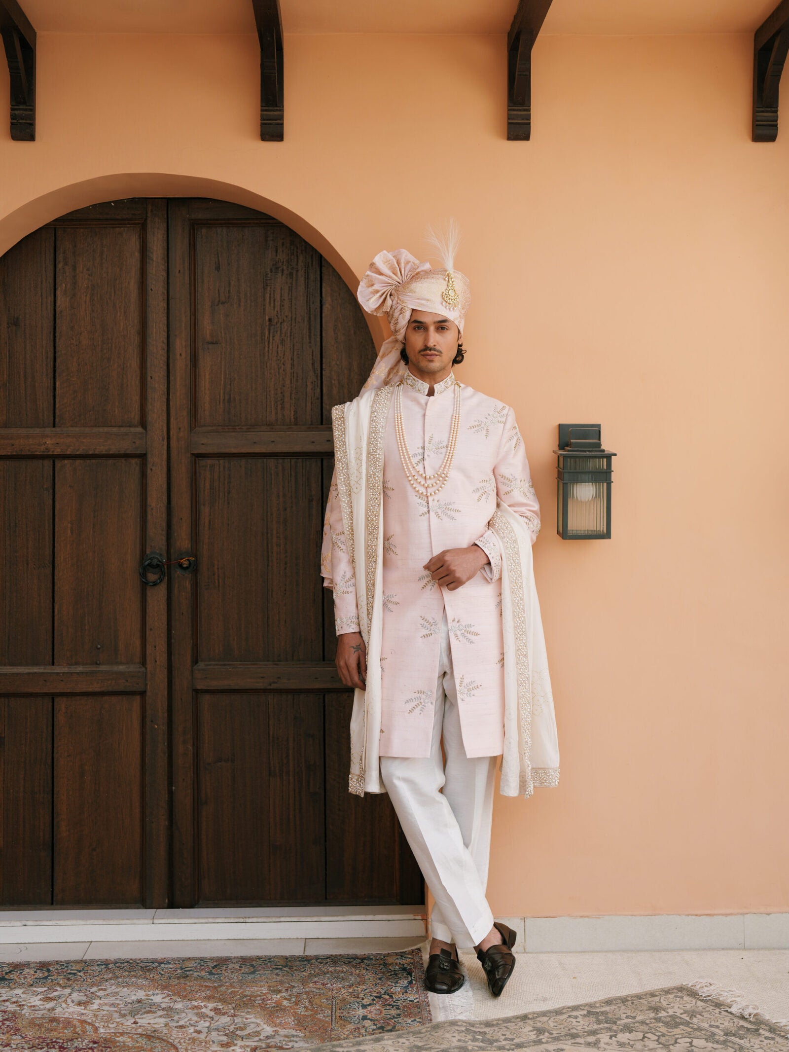 - Design: Traditional achkan style with detailed neck and cuff embellishments