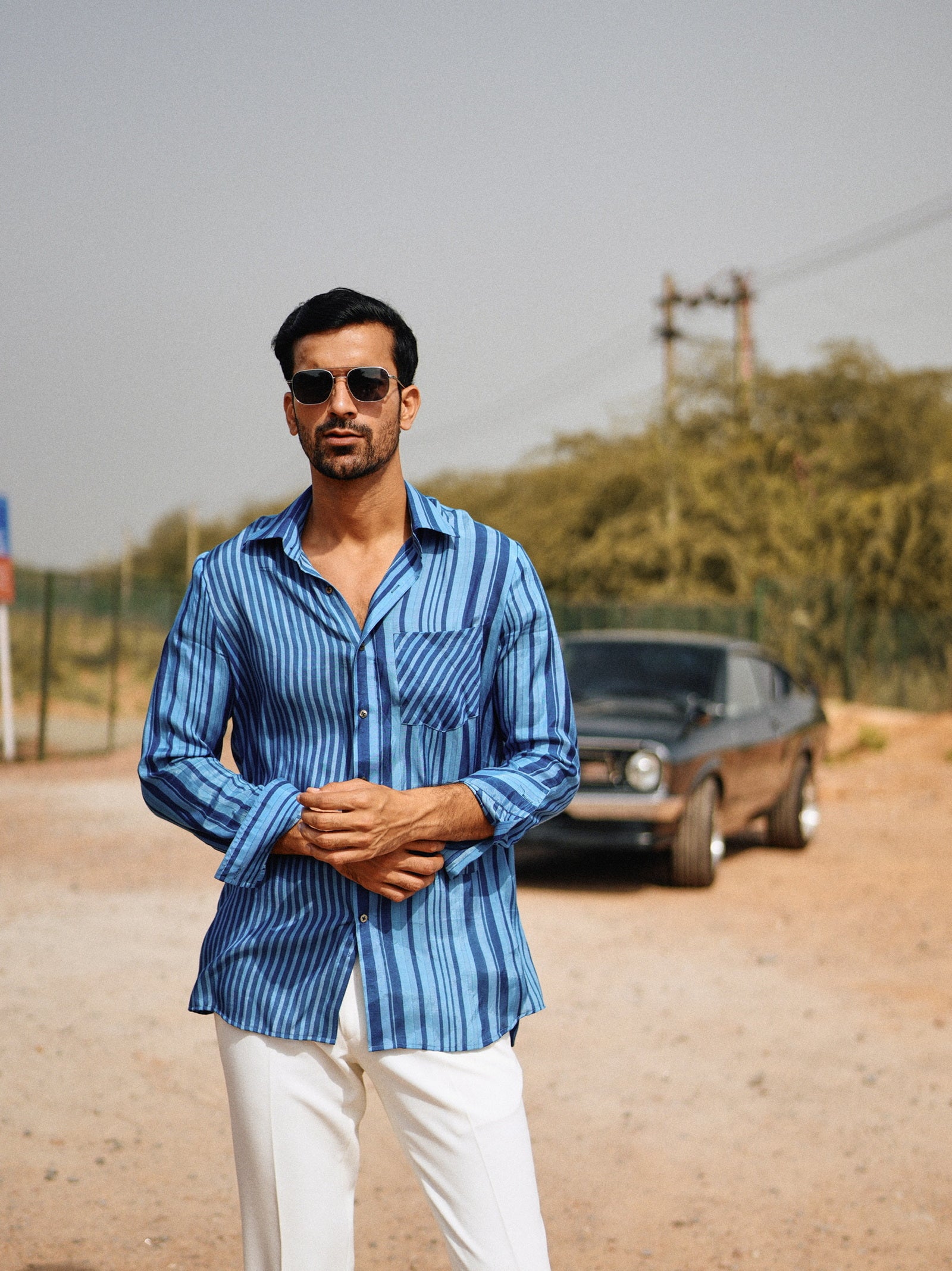 Striking but easygoing — the cool tones of this resort shirt channel beachside lounges and rooftop cocktails. Crafted in lightweight cotton-satin, it’s made for the rhythm of summer.