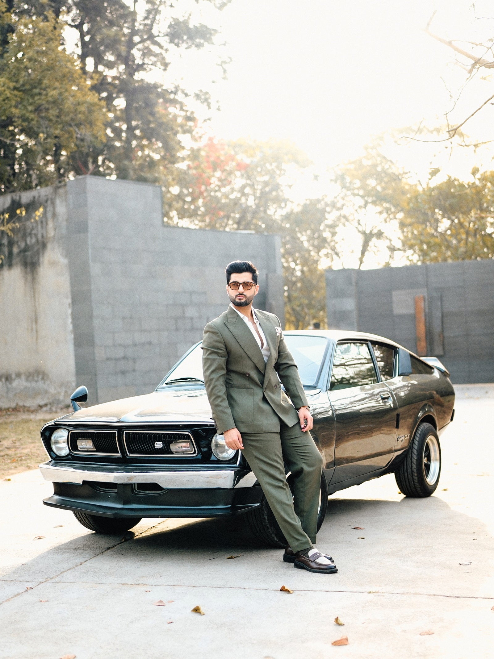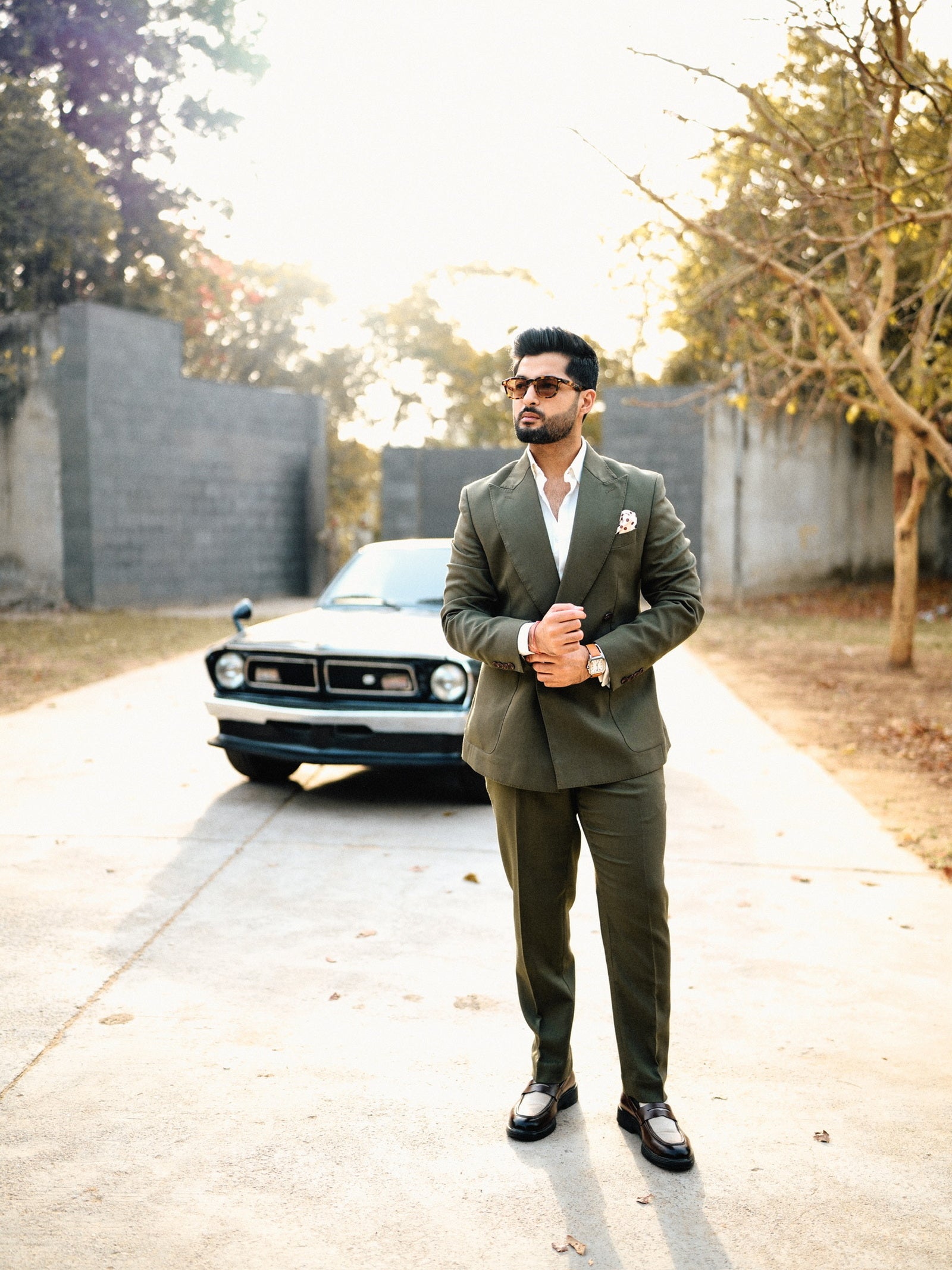 Effortlessly tailored in a breathable cotton-lycra blend, this olive green suit is your summer essential. Unlined and crafted with natural shoulders for relaxed structure and ease of movement—perfect for sharp days in the sun without breaking a sweat.